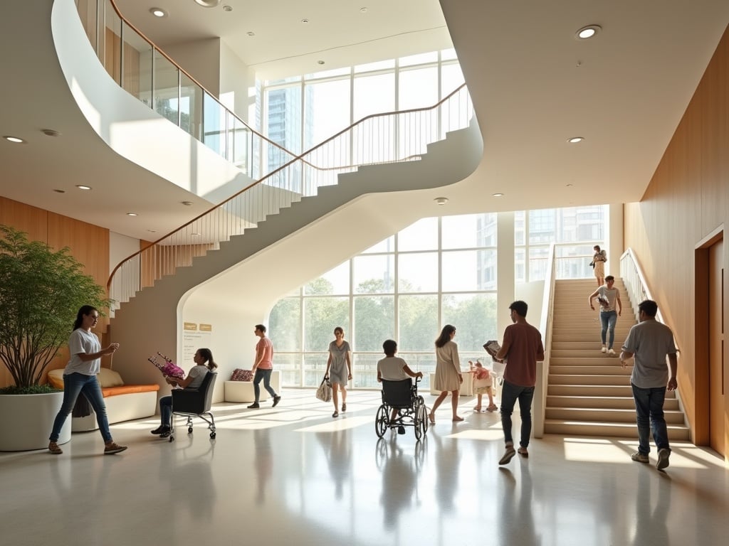 - Señalización intuitiva: Uso de colores contrastantes, texturas y, en algunos casos, braille para una orientación efectiva.